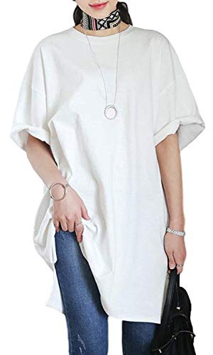 [スリーピング シープ] レディース ロンt 半袖tシャツ ロング tシャツ ビッグサイズ オーバーサイズ ビッグシルエット ワンピ 夏 春(WH-M)