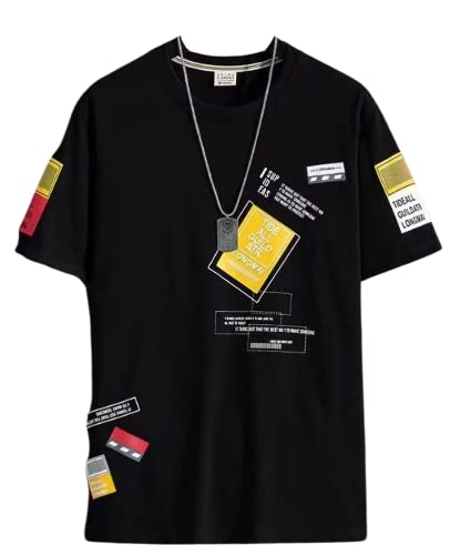 [エンプティオ] サラサラ シャツ メンズ アウトドア アート ビッグシルエット ドット 半袖 襟なし インナー ミリタリー オーバーサイズ ポケットなし プルオーバー スポーツ シワにならない トップス v系 ヴィジュアル ワイド 9分丈 ネック 丸首 ロック オーバー ダンス プリント 韓国風 クレイジーカラー カモフラ クルーネック tシャツ ラウンドネック ストリート (L) ブラック