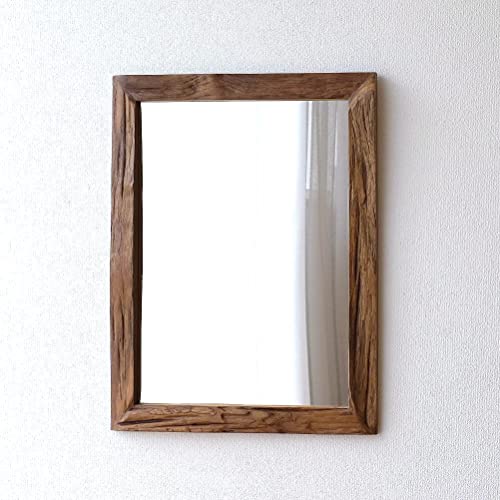 壁掛け鏡 壁掛けミラー 木製 レトロ アンティーク 天然木 大きい おしゃれ ウッド ナチュラル 60×80cm 横 チーク 古材ウォールミラー