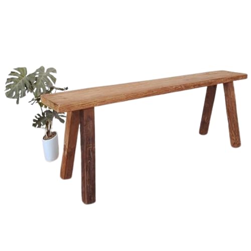 一点物 オールドチーク ベンチ 124.5cm 木製 スツール 木 総無垢材 一枚板 飾り台 花台 木製いす 長椅子 天然木 イス 椅子 チェア ハンドメイド アンティーク