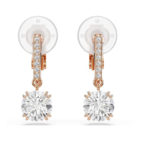 【公式】【スワロフスキー】Stilla クリップイヤリング, ラウンドカット, パヴェ, ホワイト, ローズゴールドトーン・プレーティング