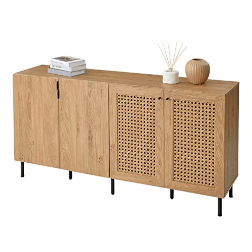 LOWYA ロウヤ 収納棚 キャビネット リビング収納 扉付き おしゃれ ラタン調 幅160cm ナチュラル/ブラック