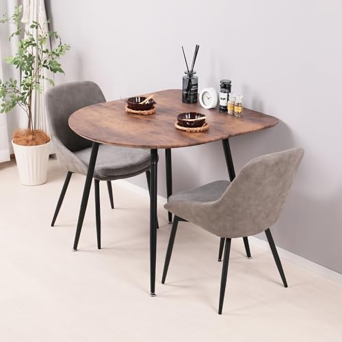 Mirai-Show ダイニングテーブルセット 2人用 半円 3点セット 北欧 壁付け 80cm幅 2人掛け ダイニングチェア 2脚セット おしゃれ カフェテーブルセット 丸型 二人用 イス 椅子 二人用 食卓テーブル 大理石風 コンパクト PUレザー Ento(エント) (ブラウン / テーブル1点 半円 + グレー / チェア2脚)