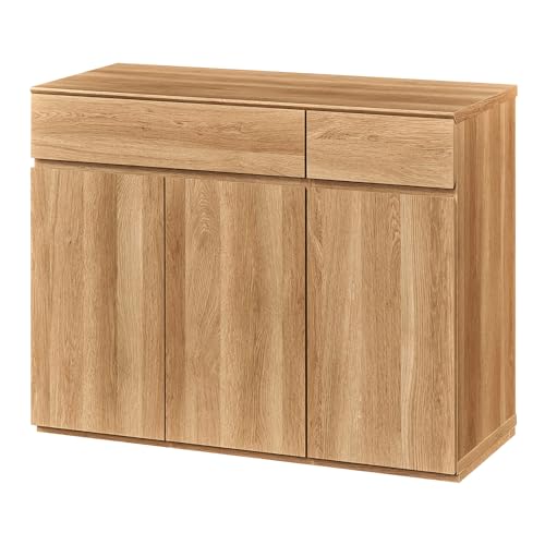 白井産業 キャビネット リビング サイドボード 扉付 引出付き 豊富なラインナップでリビングの家具を揃えられるコーディネート家具 ナチュラルブラウン 幅90 高さ72 奥行42cm ナチュリカ NTU-7090DH NA