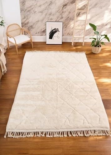 モロッコラグ ベニワレンラグ モロッコ製 ブジャドラグ アイボリー系 モロッカンラグ 菱形 ひし形 おしゃれ 大判 絨毯