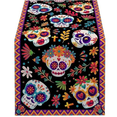 メキシコ 死者の日 テーブルランナー メキシコ シュガースカル テーブルカバー ダイニングルーム キッチン ホーム ハロウィン パーティー テーブル デコレーション 33*183cm スタイル4