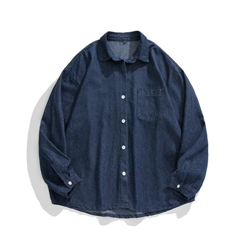 [Manatsulife] デニムシャツ オーバーサイズ 男女兼用 長袖 おしゃれ 胸ポケット 折り襟 ボダン付き ゆったり ジーンズ生地 カジュアル 普段着 秋服 春服 CS3592 (JP, アルファベット, L, ネイビー)