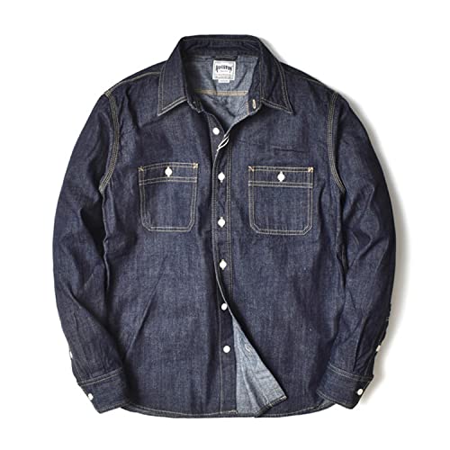 [ヒューストン] デニムシャツ メンズ 長袖 ( アメカジ・色落ち・ワークシャツ・USコットン )(Mサイズ・インディゴ)