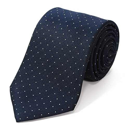 [ミチコロンドン] ブランドネクタイ 日本製 シルク100% ジャガード織 ピンドット (A柄:ネイビー)