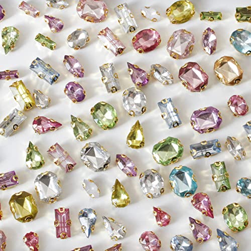 【パステルカラー】100粒 【ビジュー パーツ】20g 台座付き アクリル ラインストーン ミックスアソート セット
