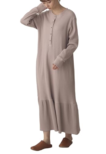 [ANGELIEBE エンジェリーベ] マタニティ 授乳 パジャマ 出産後も長く使える サーマル ティアード リラックス ネグリジェ 産前 産後 長袖 ロング丈 L ピンクブラウン 10236270