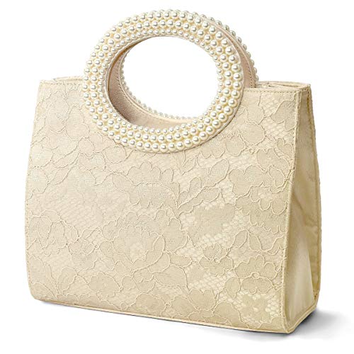 [プレックス] 2way パール ハンドル パーティーバッグ レディース レース デザイン 華やか 上品 アイボリー(レースタイプ)