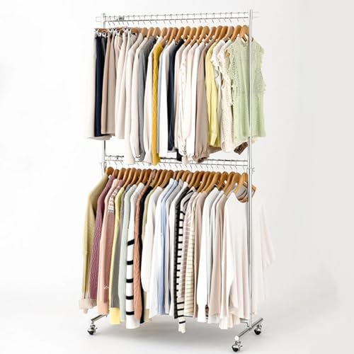 ドウシシャ ハンガーラック 頑丈 上下2段 全体耐荷重120kg 大容量 シルバー ダブル パイプハンガー 幅100.5×奥行41.5×高さ117~183.5cm 洋服収納 服掛け 衣類 衣装 業務用 キャスター付き LIH2-100CR