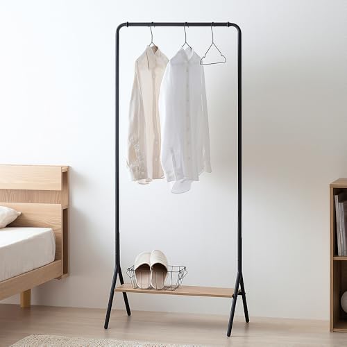 アイリスオーヤマ スペパ ハンガーラック コートハンガー おしゃれ 北欧 スリム 棚付き ハンガーラック ナチュラル/ブラック アイリスオーヤマ HPI-640 HIROBIROシリーズ