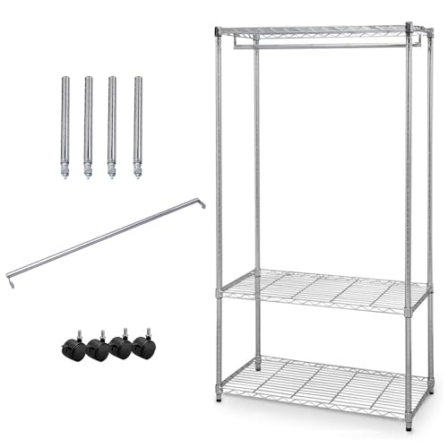 アイリスオーヤマ メタルラック本体 ワードローブ 3段 キャスター付 ポール径25mm 幅91×奥行46×高さ178.5cm メタルシェルフ メタルシェルフ クロムメッキ SEW-913E