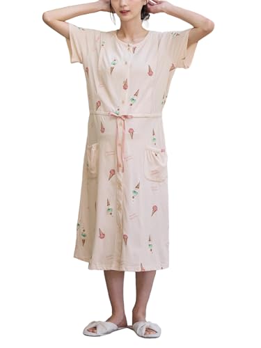 [ANGELIEBE エンジェリーベ] マタニティ 授乳口付 アイスクリーム柄 半袖 ネグリジェ 産前産後 授乳服 前開き 出産準備 パジャマ M サーモンピンク