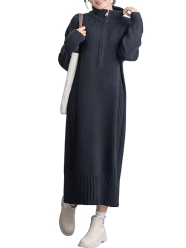 [スウィートマミー] マタニティ ワンピース 授乳 ニット ロングワンピース 授乳服 マタニティ服 長袖 ゆったり リブ [ブラック]