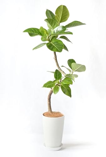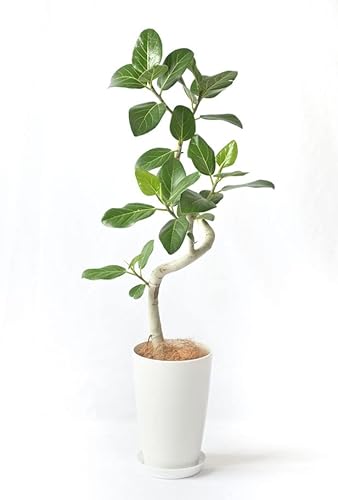 観葉植物 本物 ベンガルボダイジュ(フィカス・ベンガレンシス)曲がり樹形 7号プラ鉢ロングポット (ホワイト)