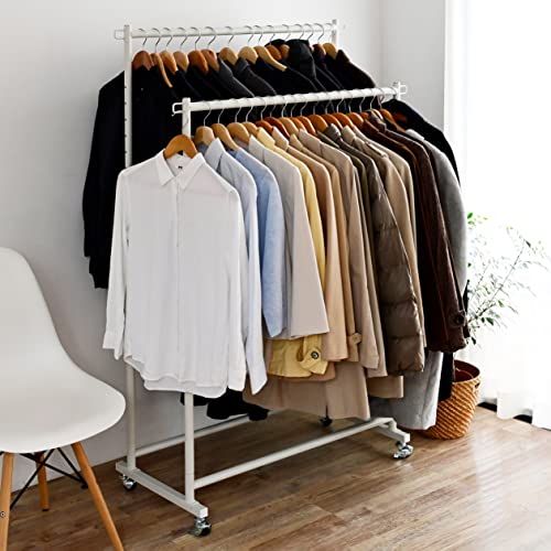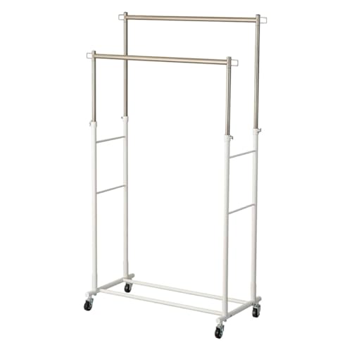 山善(YAMAZEN) ハンガーラック 頑丈 キャスター付き ダブル 幅91.5×奥行43×高さ109.5/114~169cm(5cmピッチ12段階) 全体耐荷重80㎏ 高荷重でも動かしやすい 大容量 衣類収納 組立品 スモークホワイト DDSH-W(SMW)