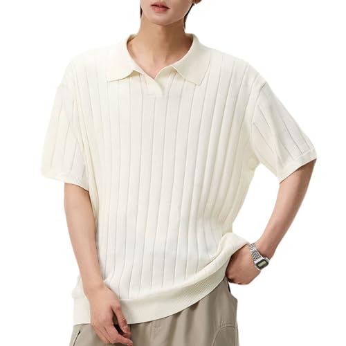 [WUXZHI] サマーニット メンズ 半袖 ポロシャツ 夏 Tシャツ カットソー ゆったり 春夏服 通気性 ビジネス カジュアル ニットソー 冷感 涼しい 柔らかい
