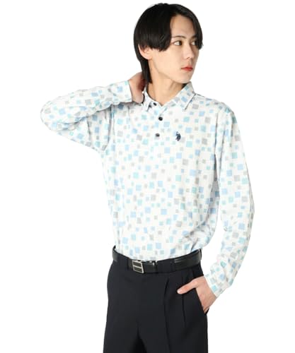 [U.S. Polo Assn.] [ユーエスポロアッスン] ゴルフウェア ポロシャツ 長袖 メンズ 幾何学プリント長袖ポロ PLM53101HY 10WH L