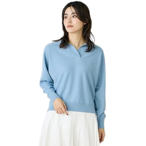[イネド] ポロ衿ドルマンニット サックス3 09