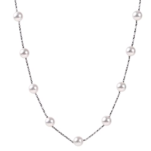[MIONO] 【桂由美プロデュース】 パール ネックレス Yumi sienne 7mm ショート ステーション 人気 レディース 冠婚葬祭 おしゃれ 日本製 (シルバー)