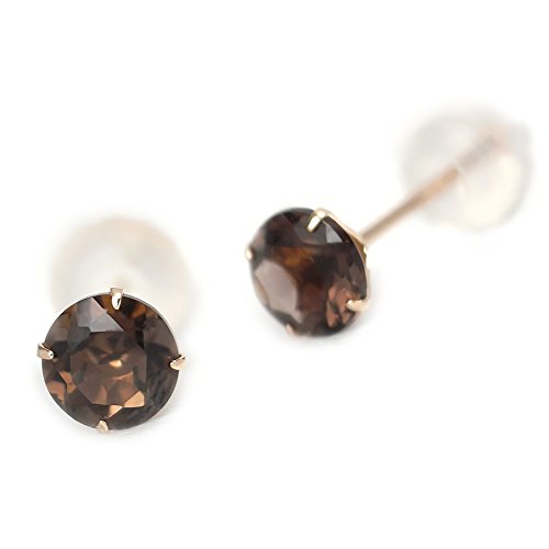 K10 イエローゴールド 天然 スモーキークォーツ 両耳用 4mm ピアス スタッド ピアス