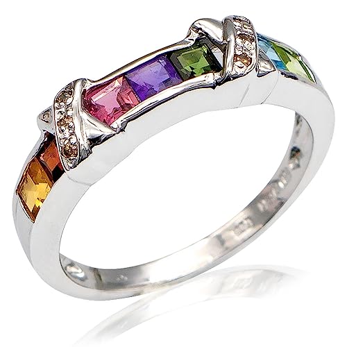 [マックスコスメジャパン] パワーストーン 指輪 レディース アミュレットリング お守り ダイヤモンド 天然石 7色 シルバー925 (21号)