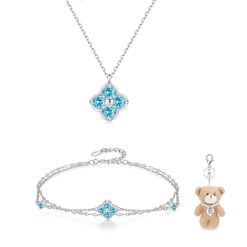 [FH.bird] アクアマリン ネックレス ブレスレット セット シルバー925 金属アレルギー対応ネックレス クローバー 3月誕生石 2連 ブレスレット レディース 3月記念日 誕生日プレゼント 女性 人気 バレンタイン ギフト ホワイトデー お返し 入学式 卒業式