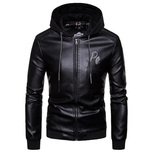 [ZHONGJUE] ジュージェン メンズ 無地 レザー ジャケット ジップアップ 革ジャン ライダースジャケット ゆったり フード付き アウター 秋服 韓国ファッション ストリート ブルゾン(8黒)