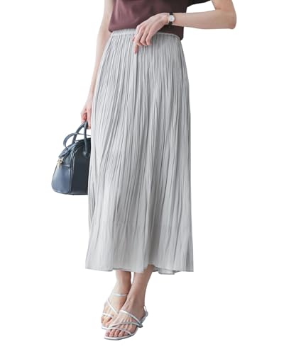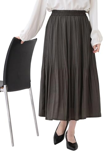 [ シューラルー ] マキシ・ロングスカート 【セレモニーにも】ひらりと揺れる上品シルエット サテンプリーツスカート C6272601 レディース チャコールグレー(014) 00(FREE)
