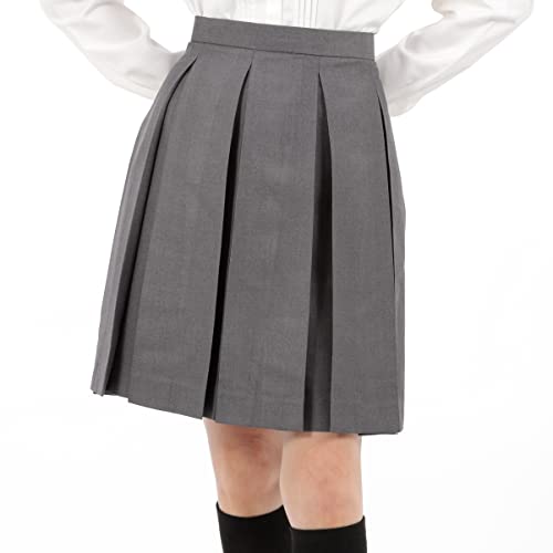 [Eiza] ボックス プリーツスカート 学生 制服 箱ヒダ スクール スカート 女子高生 e456 (M, 灰色 48cm)