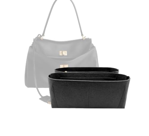 Xoppia バッグオーガナイザー Balenciaga Rodeo Mini Small Medium Large対応フェルトインサートライナー女性用トートハンドバッグ(ブラック、Mサイズ)