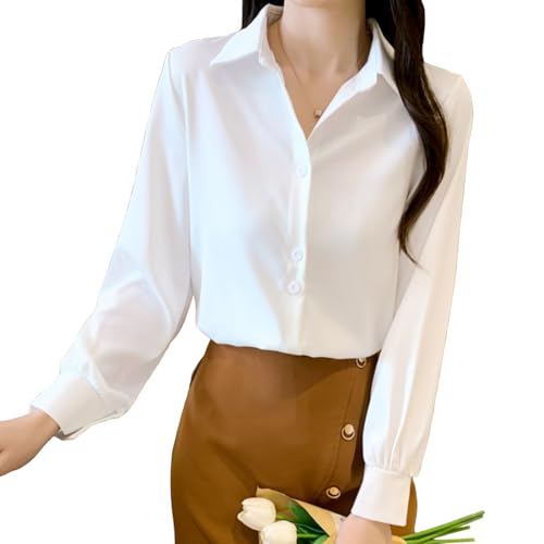 [ルナー ベリー] ブラウス 長袖 きれいめ サテン ボタンダウン シャツ オフィス レディース 18401 (XL, ホワイト) セレモニー オフィスブラウス ジャケットのイン 18401 (XL, ホワイト)