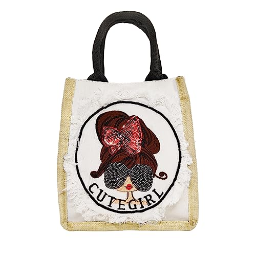 [DIVA Rose] ジュートバッグ レディース おしゃれ 麻 トートバッグ カゴバッグ 夏 小さめ 軽い 軽量 ハンドバッグ トートバッグ ガールジュート (ホワイト)