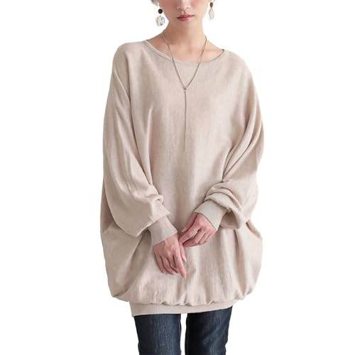 [n'OrLABEL] オシャレウォーカー【ボートネックドルマンニット】セーター レディース 秋 長袖 トップス 綿100% コットン ドルマンスリーブ 綿ニット ボートネック 薄手 ゆったり カジュアル 体型カバー 大きいサイズ tal1972