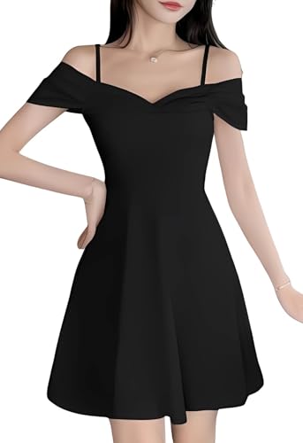 [トーアソーア] フレア ワンピース レディース ミニ オフショルダー ハイウエスト (M, 黒)