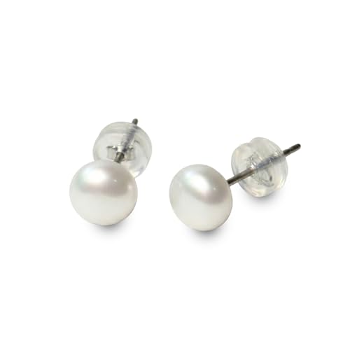 [クレインズコレクション]長期保証 日本製 天然 淡水パール 真珠 ピアス イヤリング ボタンシェイプ 金属アレルギー対応 選べるサイズ&カラー 修理交換対応可 自社生産 ケース・お手入れクロス・巾着袋付 ホワイト ピンク(TP8mm WH-SV)