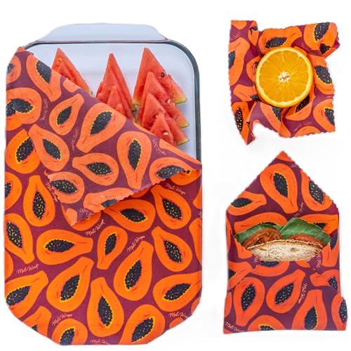Meli Wraps 蜜蝋ラップ – プラスチックラップに代わる再利用可能な食品ラップ代替品認定オーガニックコットン、ハワイアン蜜蝋製3パックにはサイズ(SML)が含まれます 美しいオリジナルプリント入り