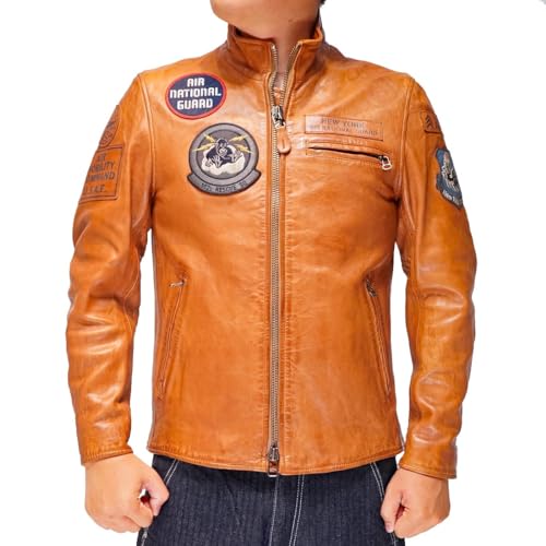 [アヴィレックス] AGED LEATHER STAND ZIP RIDERS JACKET A.N.G. / エイジド レザー スタンド ジップ ジャケット A.N.G. /783-3250085 メンズ XL 386 キャメル