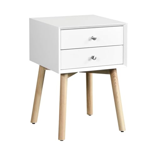 ミッドセンチュリーモダン サイドテーブル 2引き出し ゴムの木製脚 ナイトスタンド 寝室 リビング用 収納キャビネット ホワイト ベッドサイド 北欧 おしゃれ ボタニカル コンパクト 多機能 国産 人気