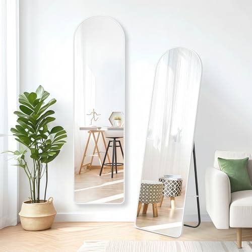 全身鏡 姿見鏡 スタンドミラー 壁掛け鏡 アーチ型 薄型アルミ合金フレーム 36*146cm 折りたたみ 自立 軽量 省スペース 安全設計 飛散防止 おしゃれ モダン 鏡 ホワイト