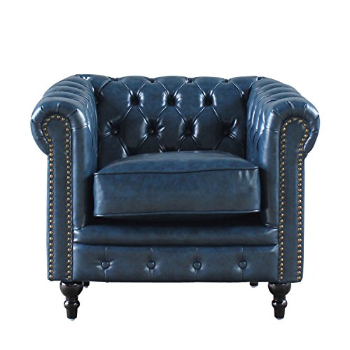 ソファ専門店 モデュロール (1人掛け 幅83cm 奥行78cm 高さ69cm) Vincent ヴィンセント VCシリーズ 英国調 アンティーク風 家具 ローソファー チェスターフィールド コンパクト アーム 肘付き クッションシート 【ブルーPUレザー(合皮)×ブラック脚 vc1p58k】 リプロ C 83*78*69