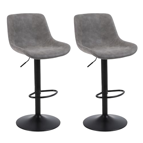 Ermnois カウンターチェア 回転昇降バースツール PUレザー ハイチェア 背もたれバーチェア キッチン 回転椅子 ハイスツール 足置き 高さ調節可能 キッチンカウンターチェア 2脚セット-グレー