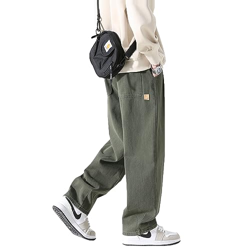 [Olekei] サルエルパンツ メンズ ズボン ワイドパンツ メンズ ズボン 9分丈 無地 調整紐 人気 快適 ゆったり 通気性 大きいサイズ カジュアル 袴パンツ 快適 オールシーズン春 夏 秋 冬 (JP, アルファベット, 3XL, #7:グリーン)