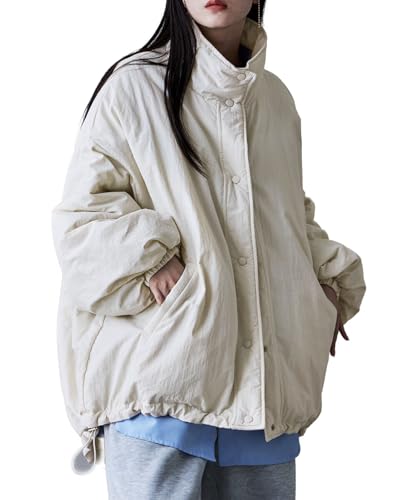 [etoll] リバーシブル 2wayスタンドカラーパファーコート アウター ブルゾン コート パフジャケット キルティングコート 中綿 ハイネック スタンドカラー ナイロン キルティング アイボリー M
