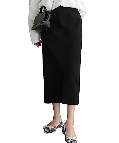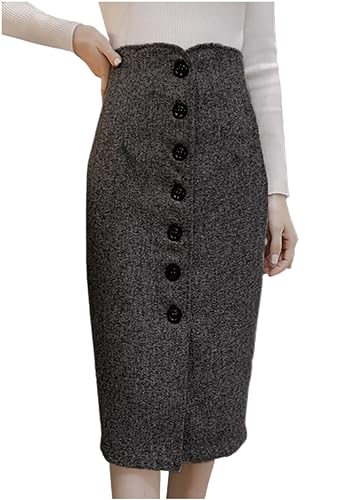 [チュナッチ] ハイウエスト タイト スカート レディース ミディアム丈 スリット 前ボタン タイトロング 通勤 ひざ下 長め ミモレ ストレート 可愛い オシャレ 大人 おとな女子 グレー 通学 秋冬 前スリット きれいめ スタイルアップ 黒系 ダークグレー CHG24-DGL2