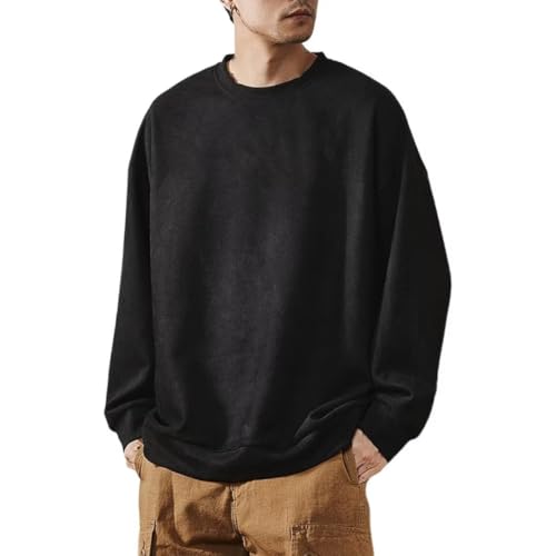 [Yeagio] メンズトレーナー 秋服 スエード ビッグシルエット 無地 トレーナー 大きいサイズ 長袖Tシャツ レトロ スウェット プルオーバー ゆったり カジュアル クールネック 冬服 春服 トップス