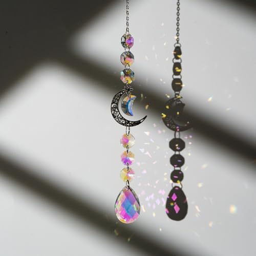 サンキャッチャー キラキラクリスタル星月窓玄関飾り 開運ペンダント 人気水晶ガラスさんきゃっちゃー キット 恋愛、風水アップ ハンギング窓/玄関/入口/車内飾り (Silver Moon-A)
